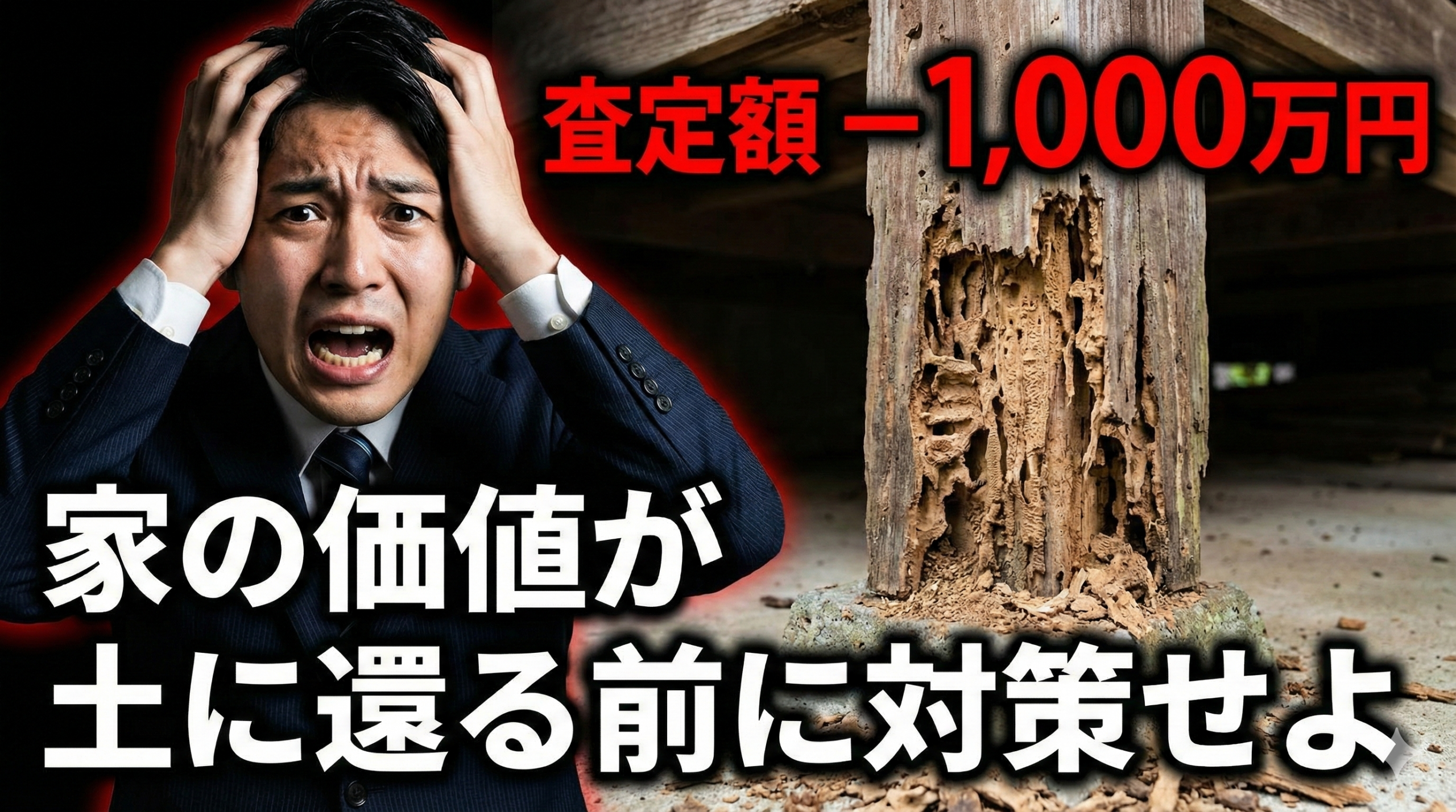 シロアリ被害を放置したまま不動産市場に出すことは、法的リスクの地雷原を歩く行為です。 被害のある物件は、買取価格が市場相場の60%〜80%まで下落します。